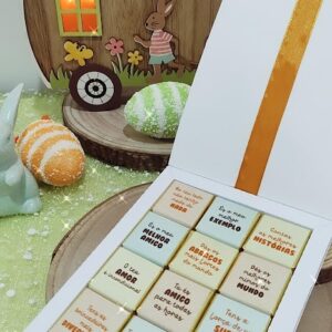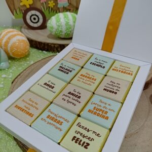 Caixinha de 12 mini chocolates “12 motivos porque és a Melhor Madrinha do Mundo”